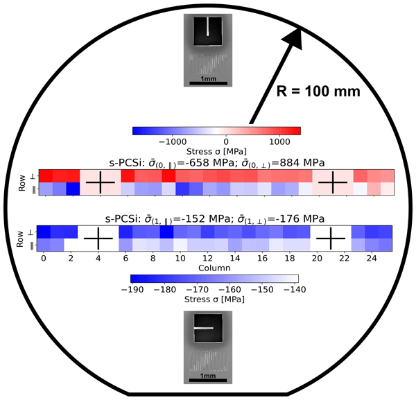 Automated contactless characterization of local thin film thickness and film stress with standard MEMS structures at wafer level